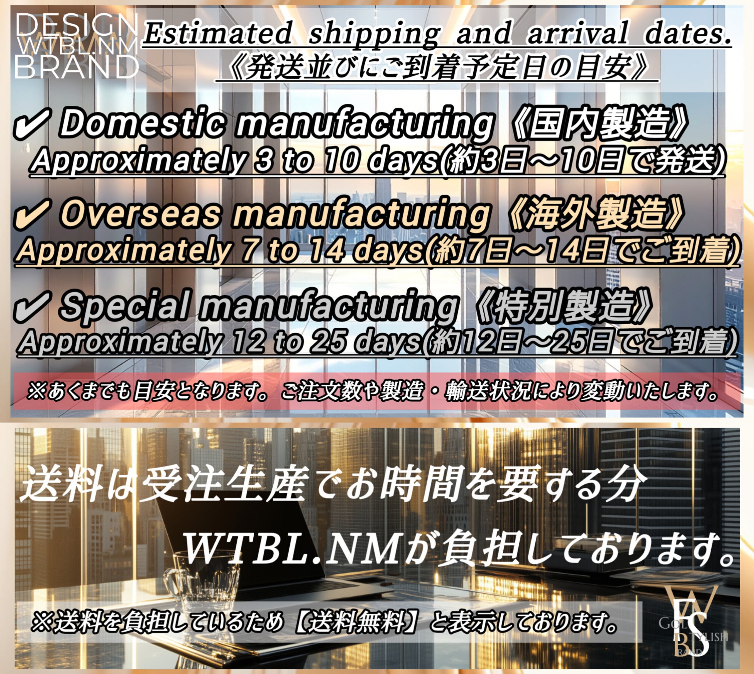 現在、特に『URBANカテゴリー』について、想定以上に多くのご注文を頂戴しているため、アイテムによっては【製造待ち】となっております。順次【製造・発送】を進めております。何卒ご了承くださいませ。