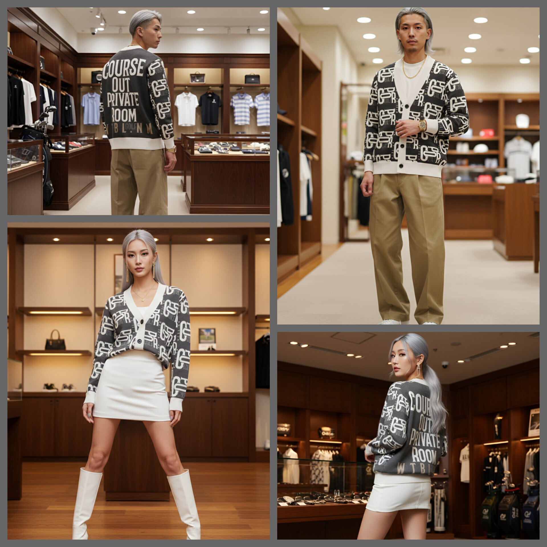 このUnisex COPR Golf Knitted cardiganは、ゴルフとファッションを愛するすべての方々のためにデザインされたジャカード編みのプレミアムカーディガンです。