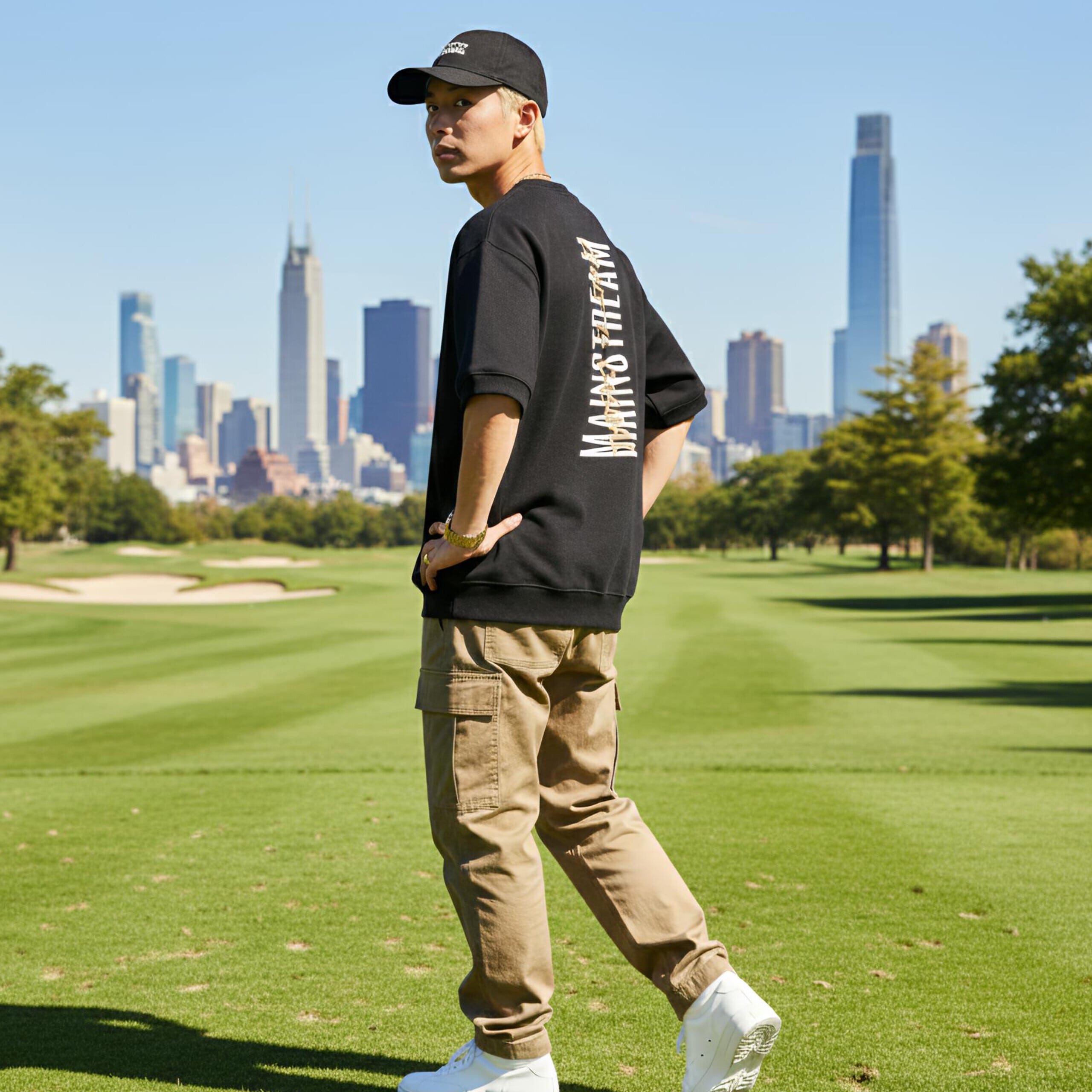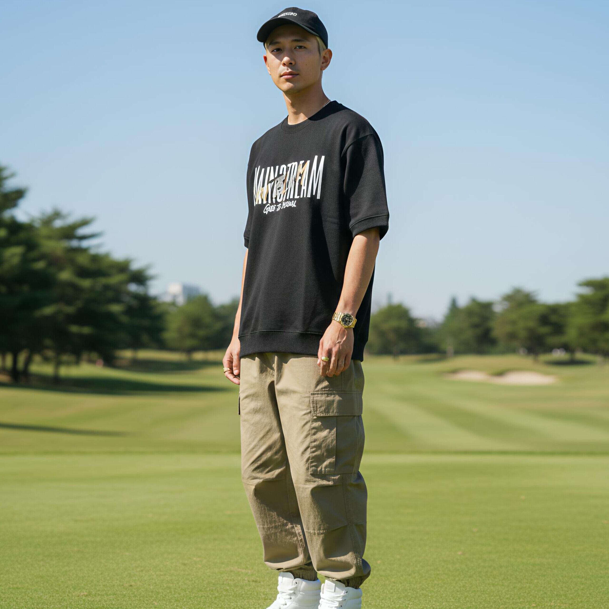 半袖という軽快さが動きやすさと涼しさを両立させ、スタイリッシュなコーデがゴルフのラウンドにも最適です。