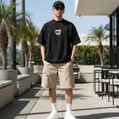 オーガニックコーマリングスパンコットン100%で作られたこのオーガニックオーバーサイズTシャツでワードローブを一新してください。ドロップショルダーと幅広の襟が特徴のデザインで、日常のアーバンストリートウェアに最適です。