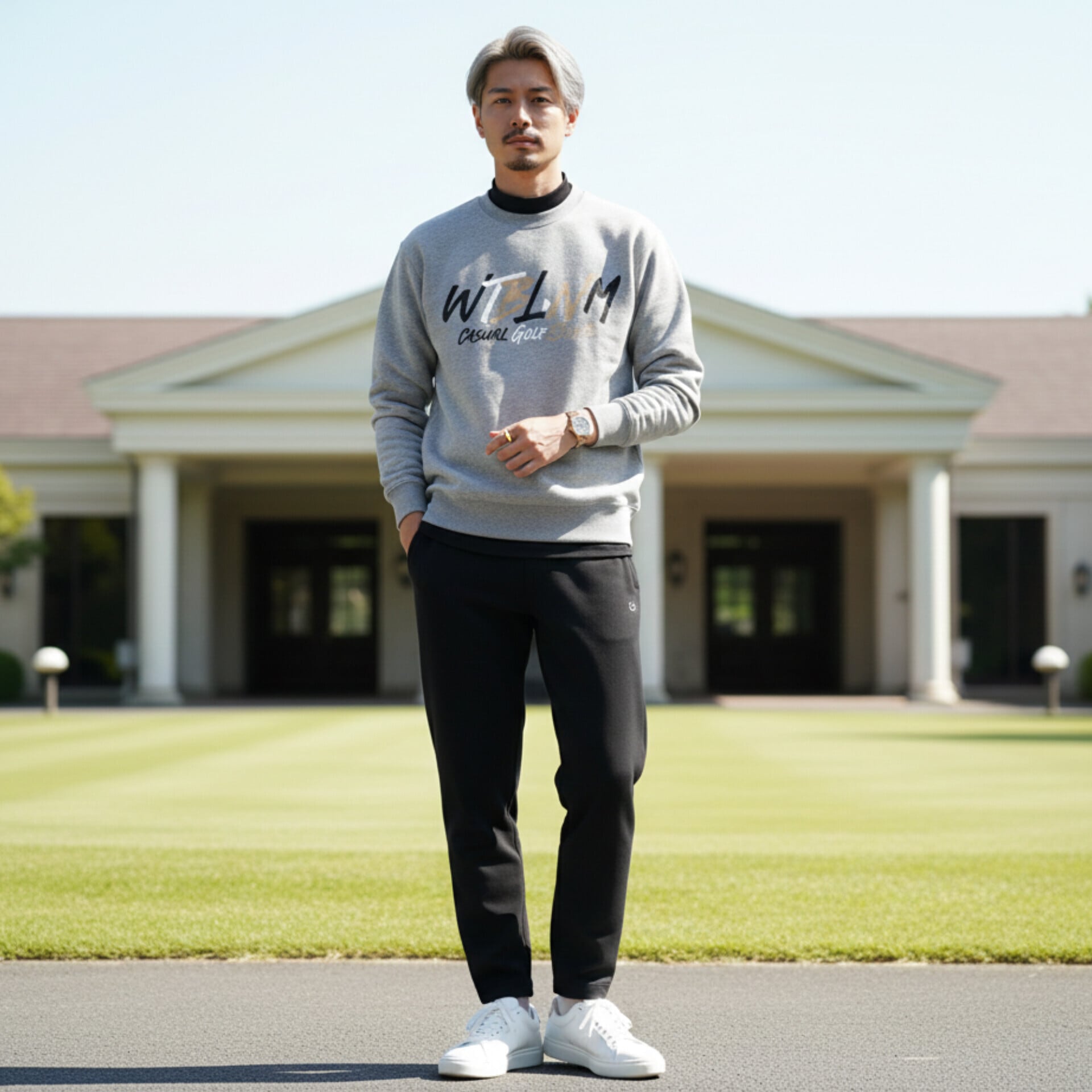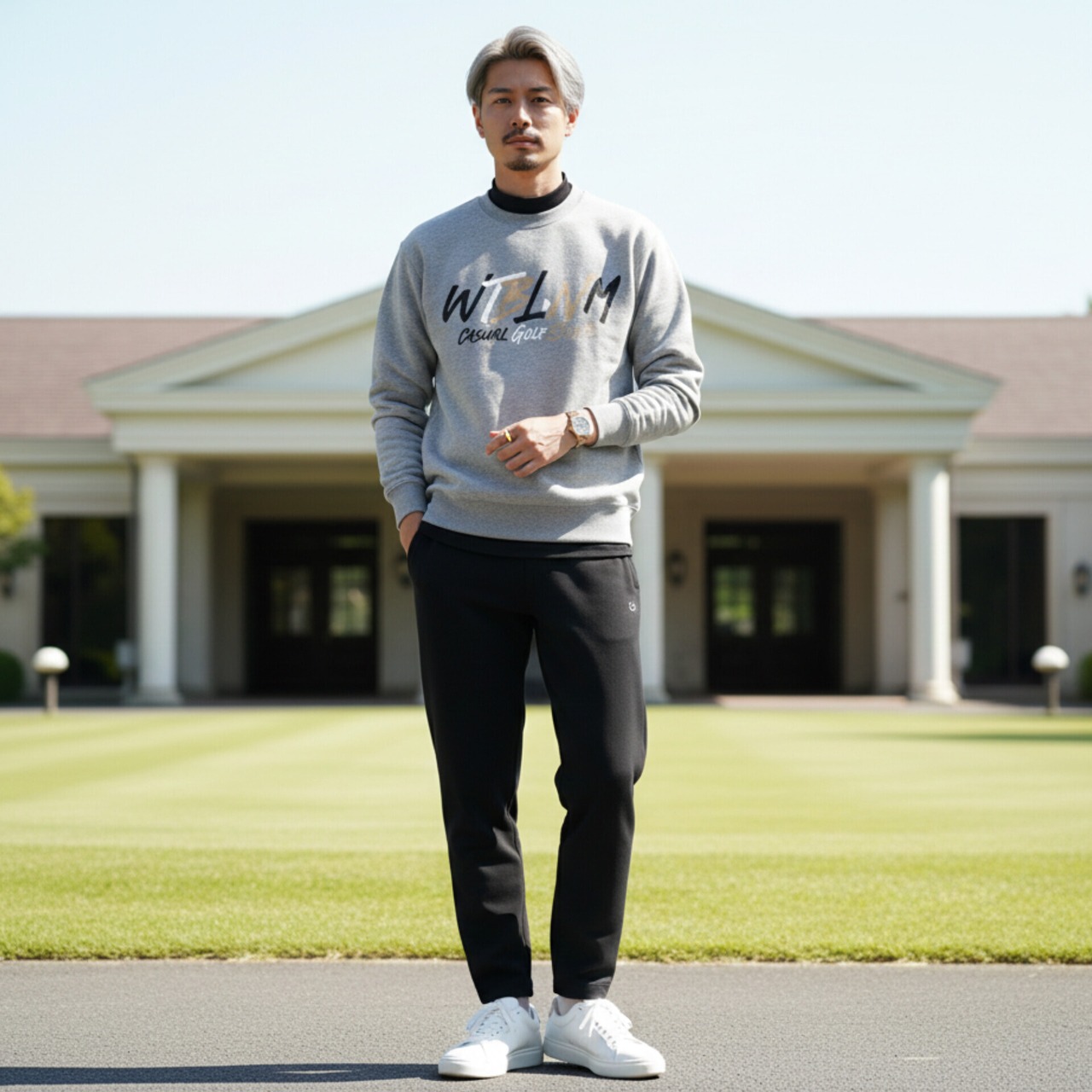 インナーにモックネックを合わせるだけで、即座に洗練されたカジュアルゴルフスタイルが完成。余計な装飾を削ぎ落としたシンプルなディテールだからこそ、プライベートの私服としても既存のワードローブに自然に溶け込みます。