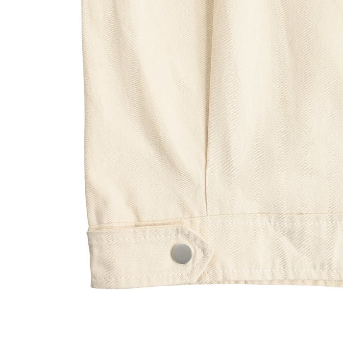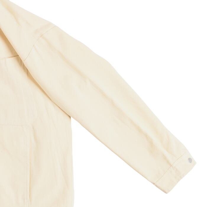 胸元のポケットやフロントボタンの比翼仕立てなど、ワークウェアらしい機能美を追求。どんなボトムスとも相性が良く、モードからカジュアルまで幅広いスタイリングに対応します。