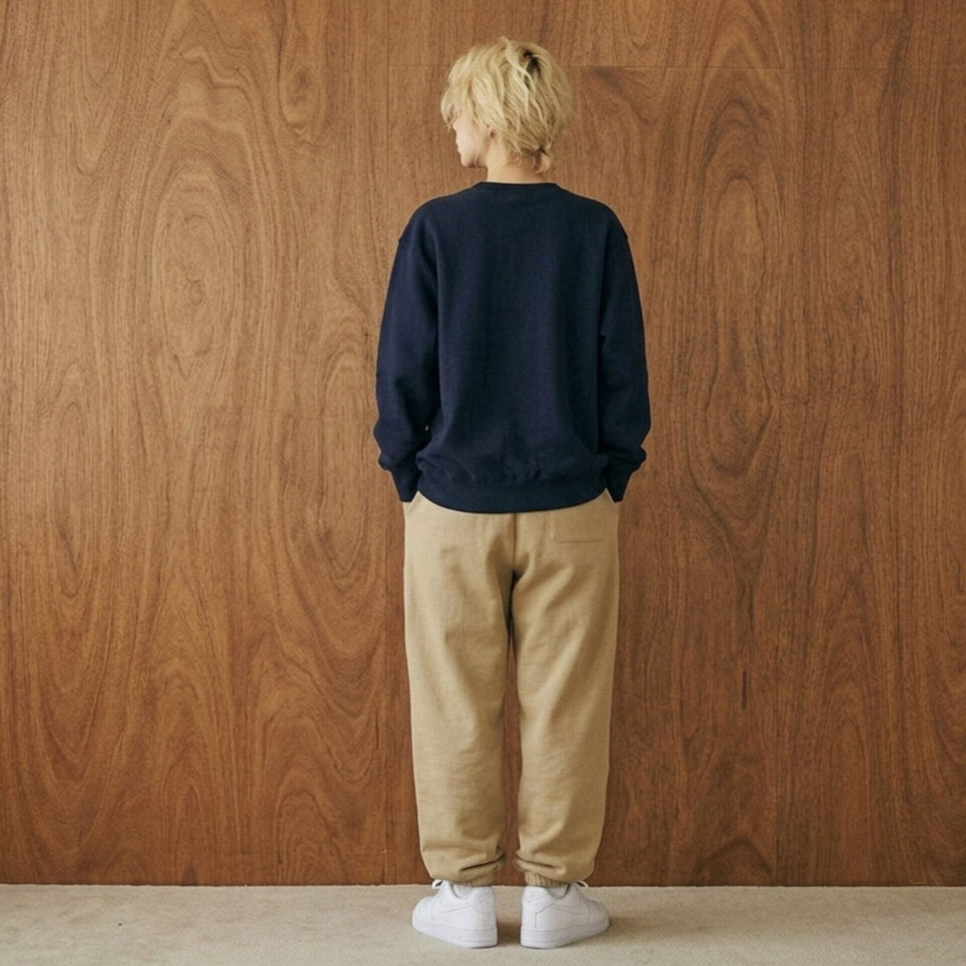 厚手の裏起毛素材を使用し、オープンエンド糸(空紡糸)特有のザラリとした武骨な質感が特徴。型崩れしにくく、着込むほどに自分だけのヴィンテージな風合いへと進化します。