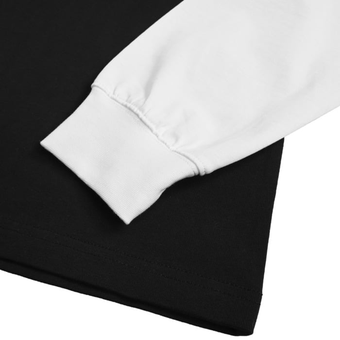 半袖と長袖を重ね着したような「フェイクレイヤード」仕様。計算し尽くされたディテールにより、一枚着るだけで完成度の高いルーズ&スタイリッシュなシルエットを演出します。