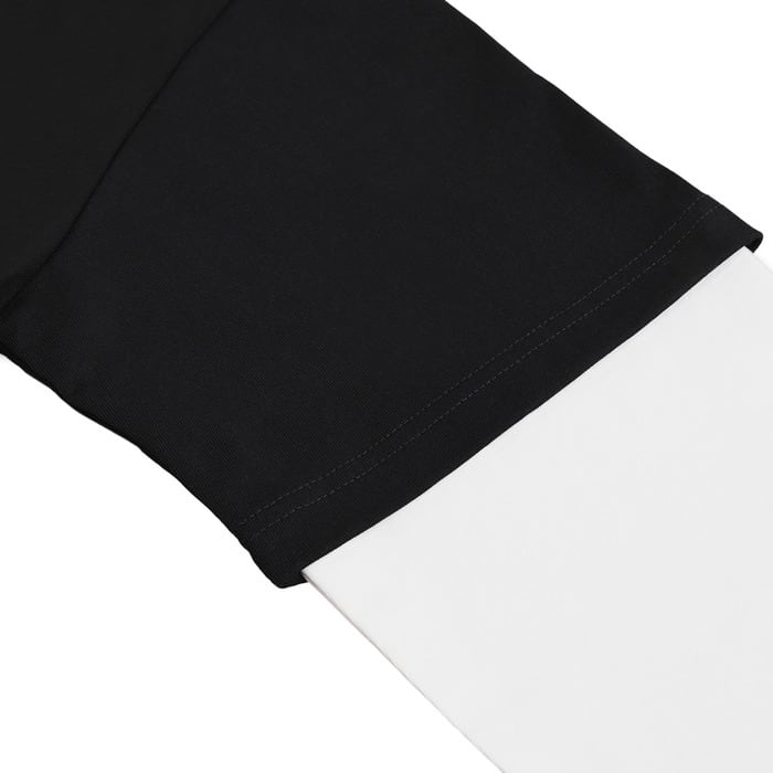 半袖と長袖を重ねたような「フェイクレイヤード」仕様。一枚着用するだけで、トレンド感のあるコーディネートが即座に完成。