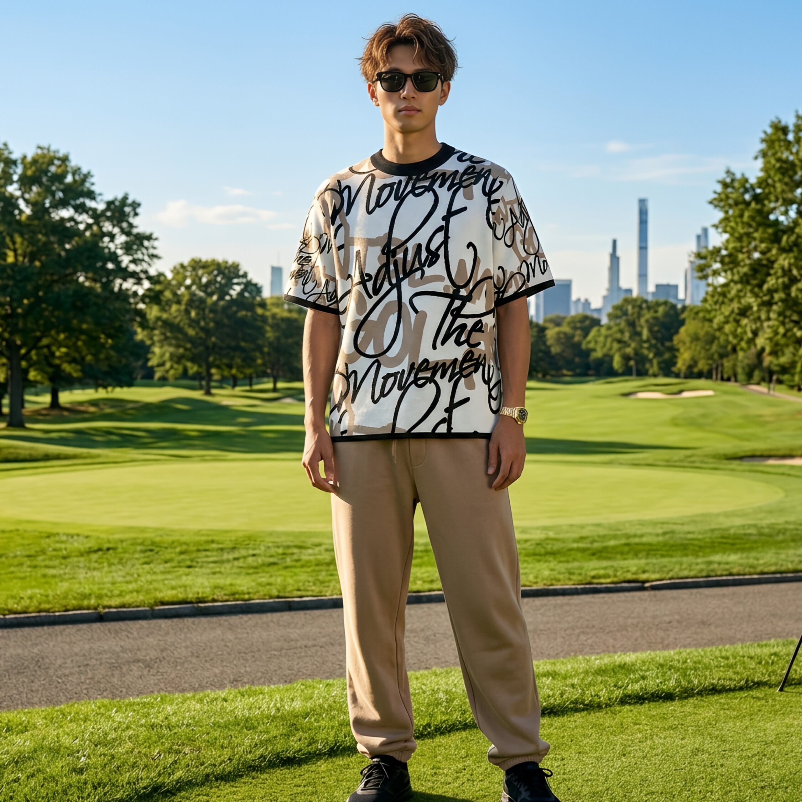 「Adjust the Movement」シリーズから、ゴルフシーンとプライベートの境界線を鮮やかに彩るKnitted classic teeが登場。最大の特徴は、見る人を惹きつける立体的なオールオーバーデザイン。