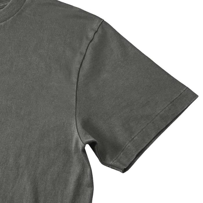 製品洗いによるダメージ加工を施すことにより、あえて着込んだようなフェード感を演出したTシャツ。縫い目のアタリやパッカリングがヴィンテージ感をプラスしています。