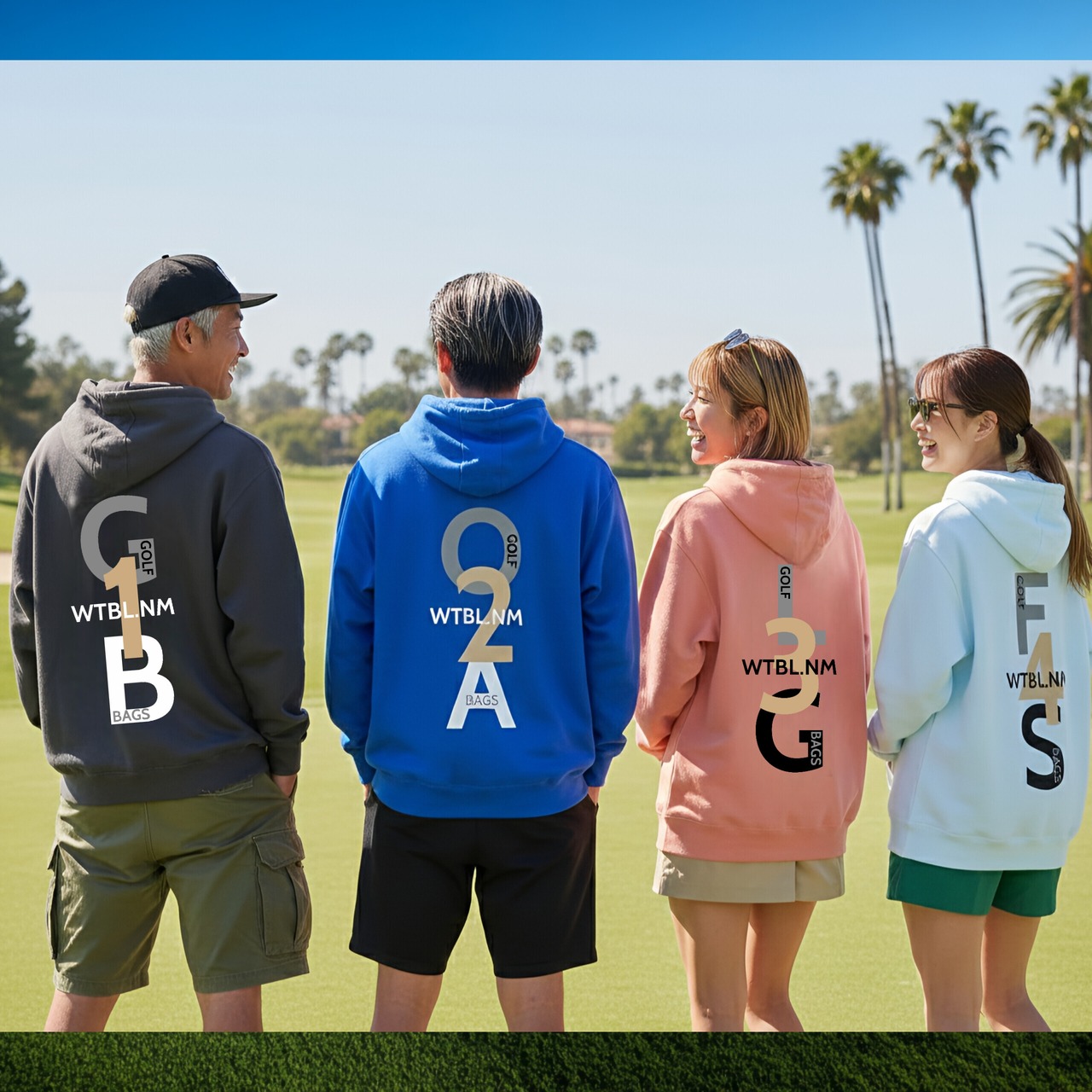 ゴルフを愛するすべての人・大勢の仲間に向けて、スタイリッシュさと機能性を兼ね備えたフーディーです。4サムゴルフバッグをセットにしたデザインは、圧倒的なユニセックス性を誇ります。